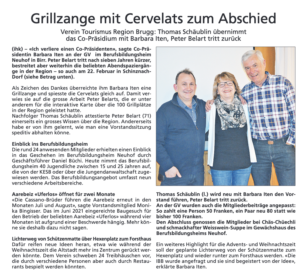 Wechsel im Vorstand Verein Tourismus Region Brugg